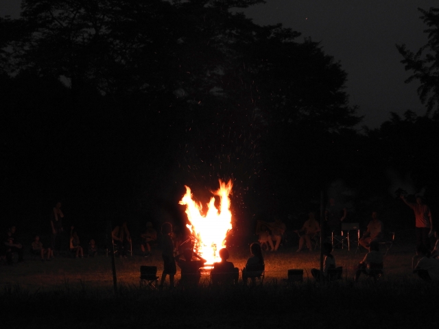 はすに構えるのは白けてしまいますので、キャンプファイヤーを大いに楽しみましょう!