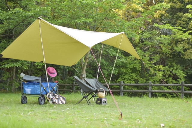強い日差しを遮ってくれたり、雨を遮ってくれたりするタープの存在は必須です。