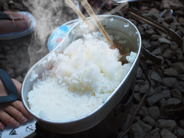 キャンプで食べる炊き立てのご飯は、いつものご飯より何倍もおいしく感じます。